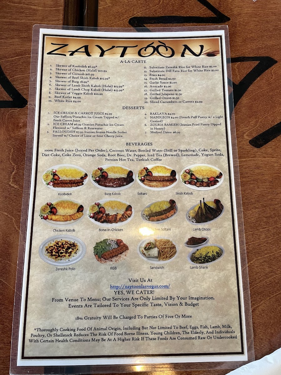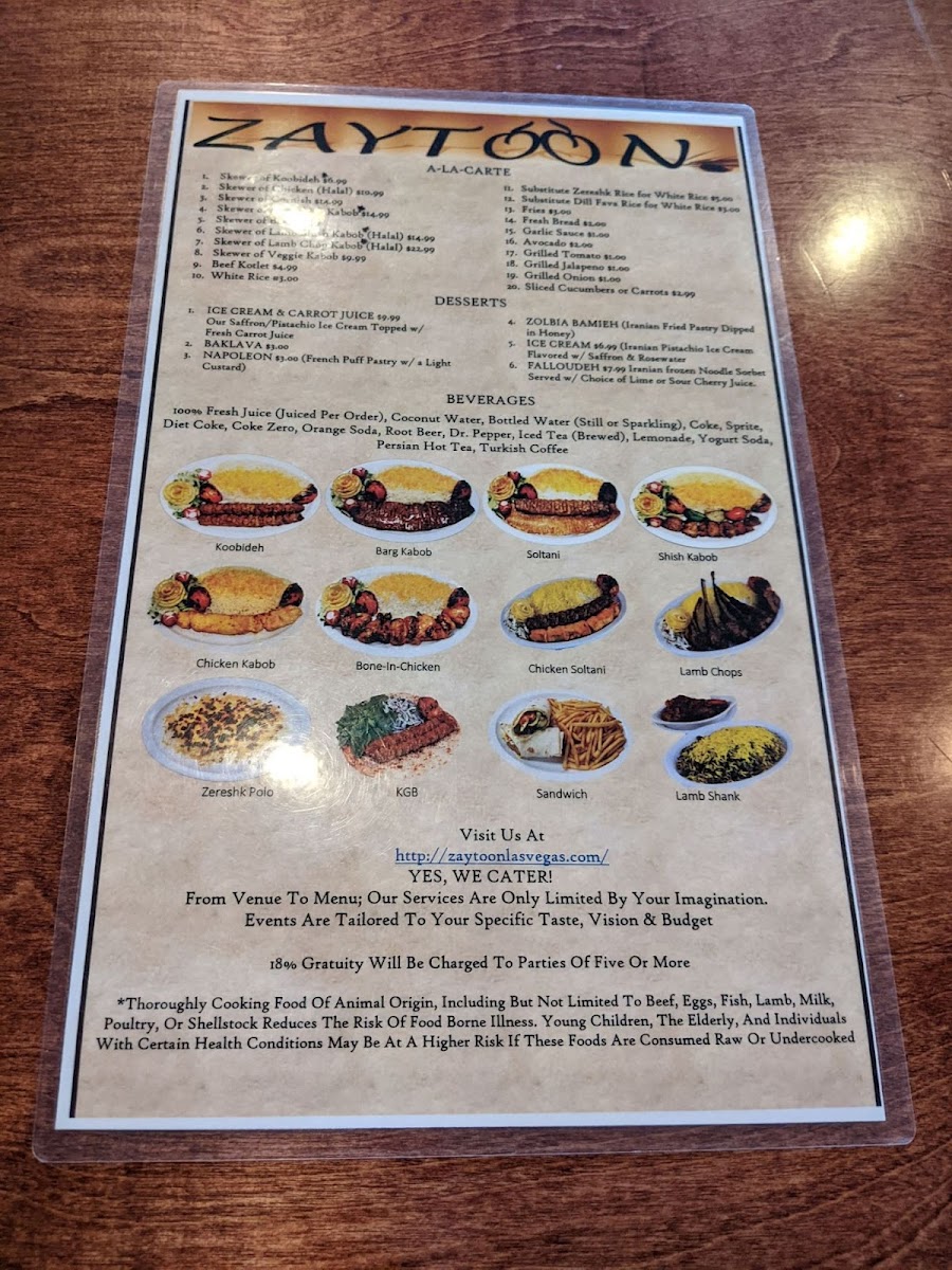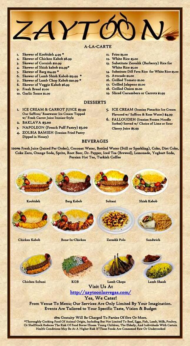 Zaytoon - NV 89147 Menu